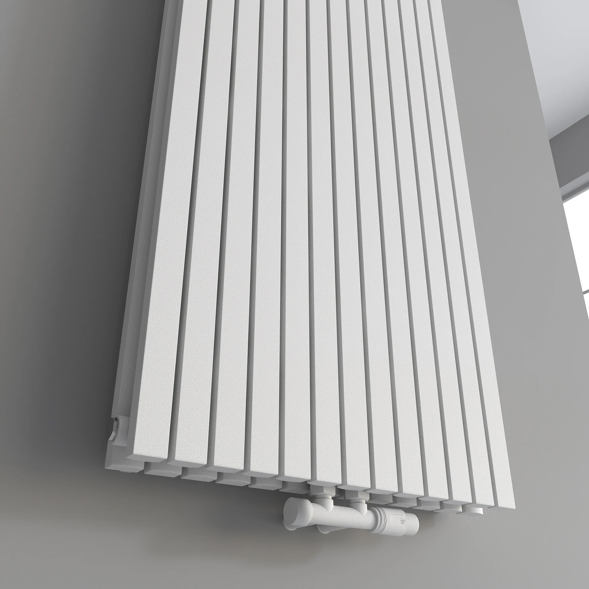 De Evo radiator belichaamt de perfecte balans tussen thermische prestaties en esthetische verfijning. Het innovatieve ontwerp onderscheidt zich door een harmonieuze constructie: de buizen zijn in elkaar genest en vormen een vlak, doorlopend oppervlak zonder visuele onderbrekingen. Dit unieke concept geeft het Evo model een eigentijds en minimalistisch silhouet, ideaal voor moderne interieurs, zowel residentieel als commercieel.